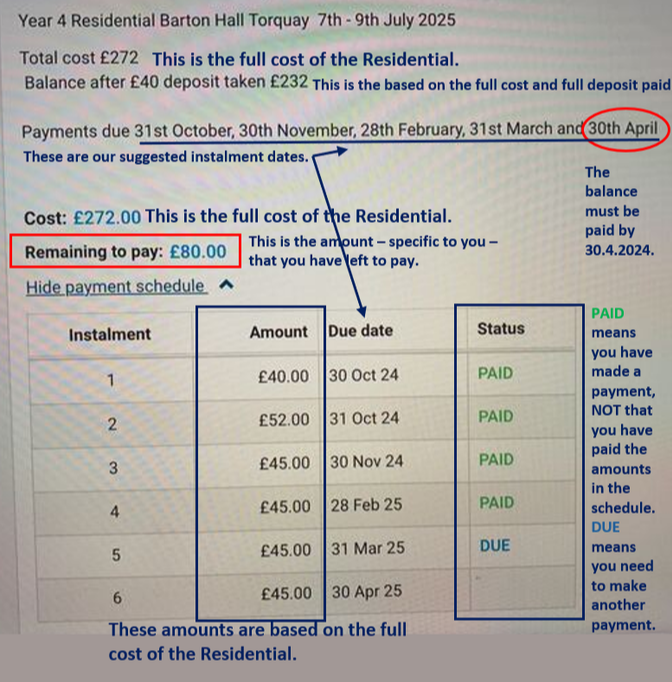 Please keep your ParentPay account topped up and in credit, if your child has school dinners. (If your child leaves the school and you have a balance on your account we can refund you.)